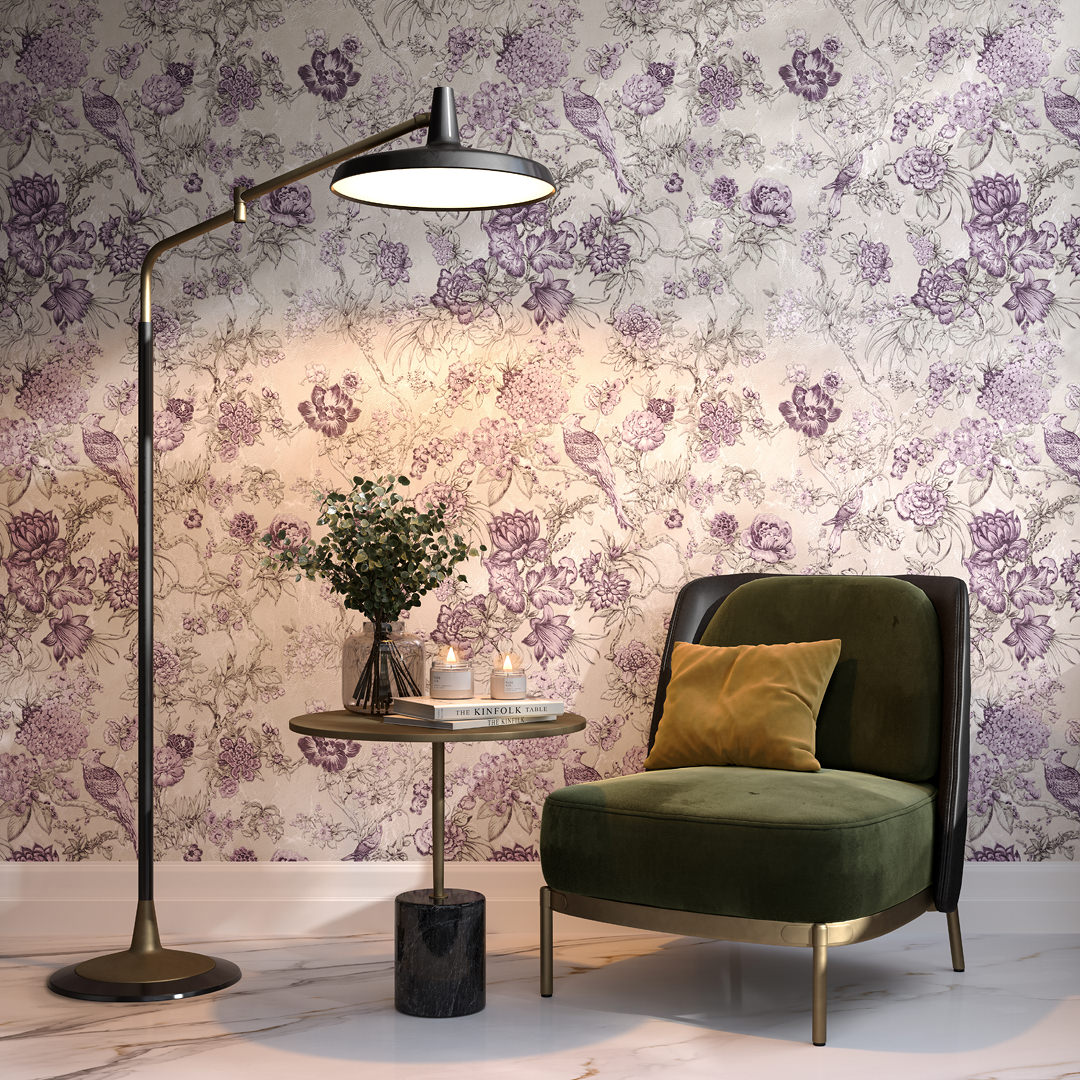 Обои виниловые Азулежу мотив, бежево-фиолетовый